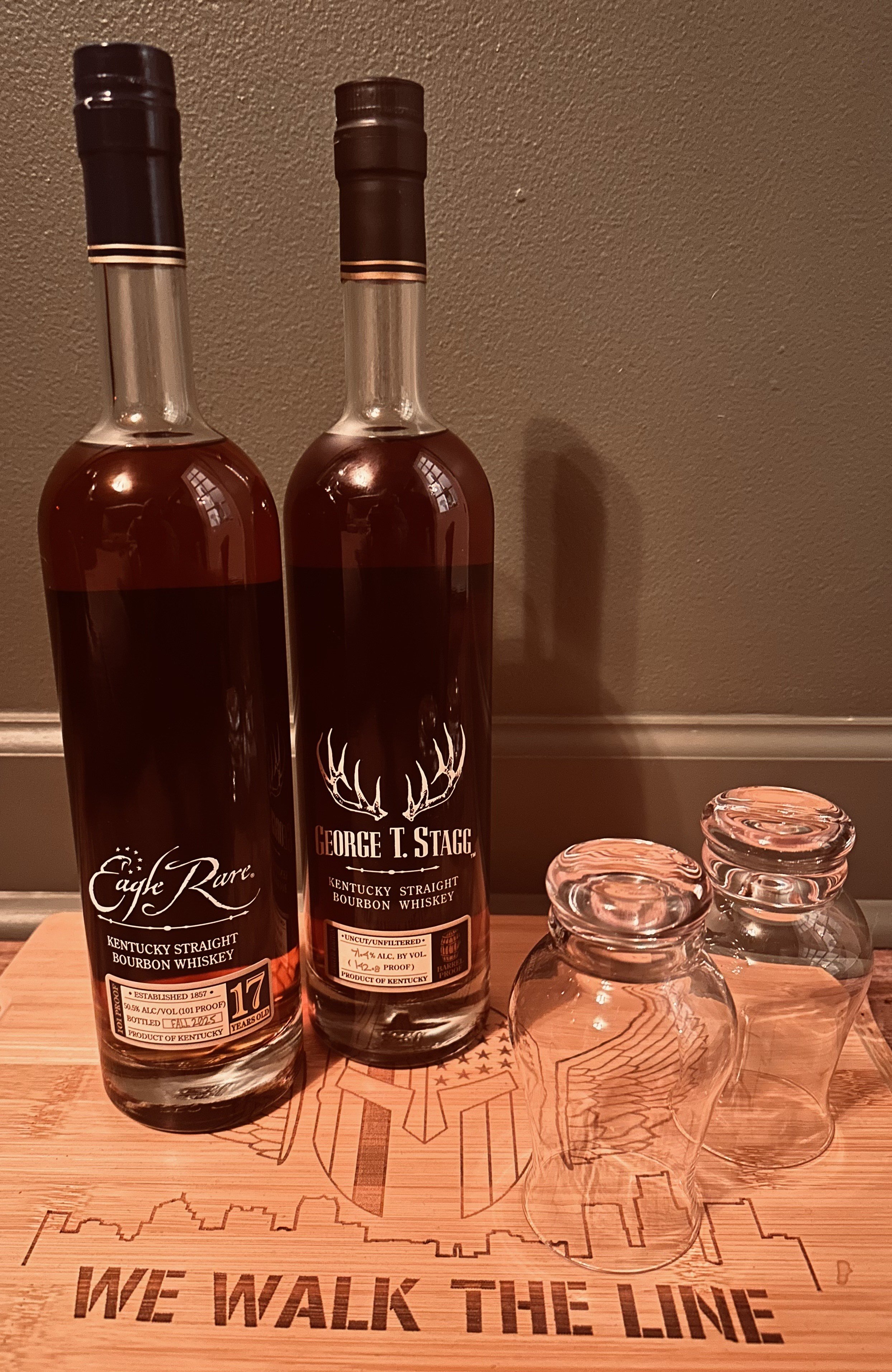 Two winners will be selected- one at halftime (George T. Stagg) and one based on the final score of the game (Eagle Rare 17).
